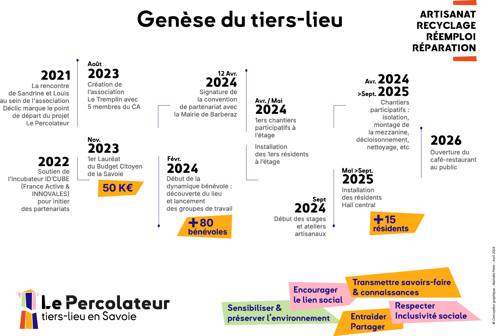 La commune de Barberaz, séduite par cette vision, leur confie une friche industrielle de 1 000 m2, ancienne usine de production de café. C’est ici, entre ces murs, que l’aventure du tiers-lieu commence, façonnée par les rencontres, les idées et les expérimentations.